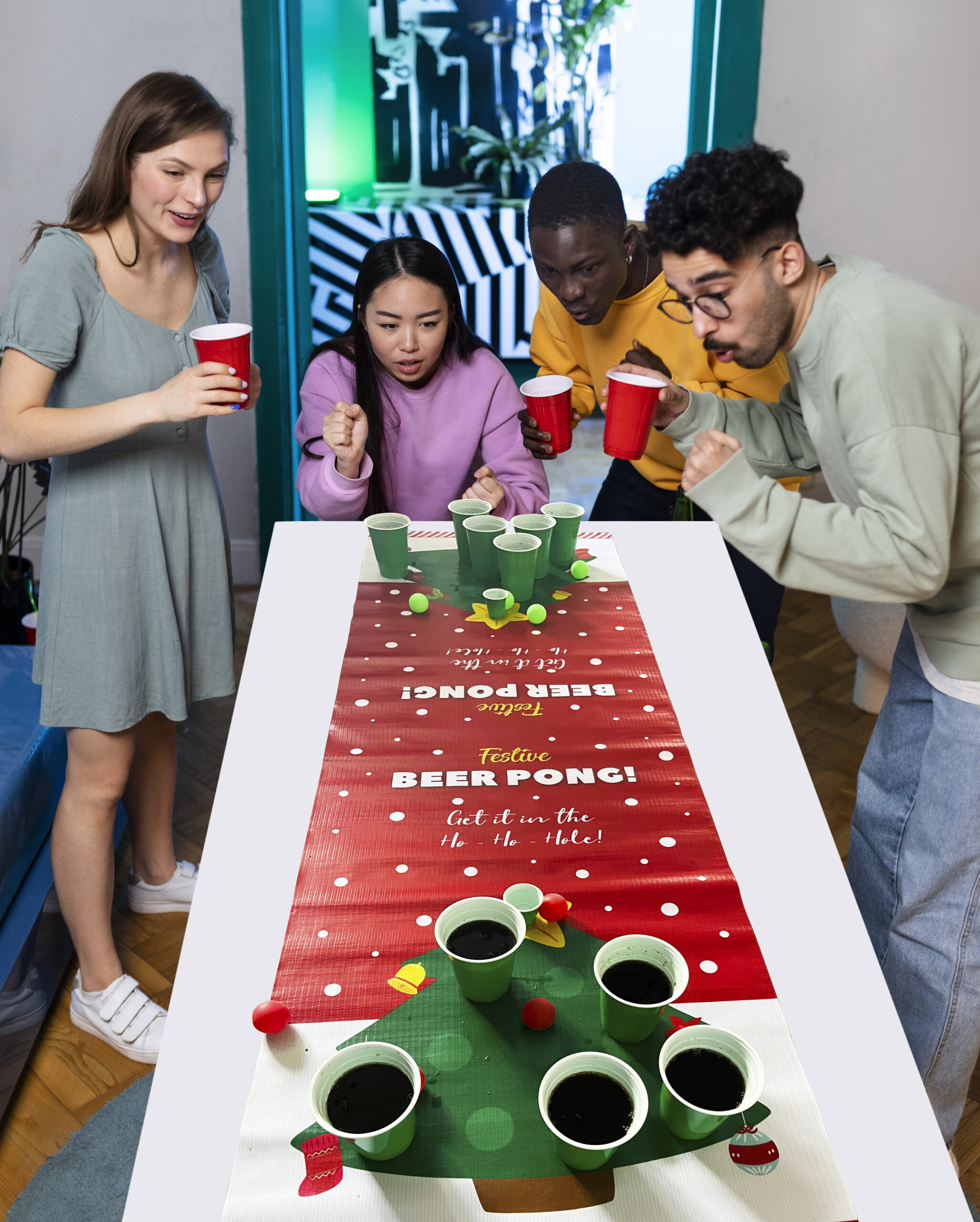 🤣 Includes roll-up board, 2 sets of green cups & red/green ping pong balls