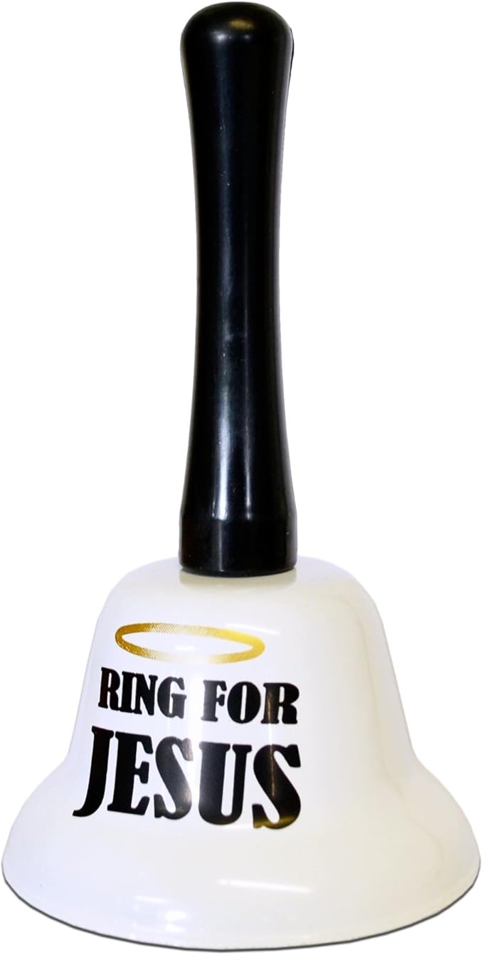 Add a touch of heavenly humour to your shelves with the Ring for Jesus Hand Bell – a divine novelty that’s sure to raise some smiles! This crisp white bell with a black handle proudly reads “Ring for Jesus” in bold black lettering, complete with a golden halo above for that extra touch of holiness. Whether it’s for parties, pranks, or a cheeky stocking filler, this playful bell is guaranteed to get attention (and maybe a few laughs from above).